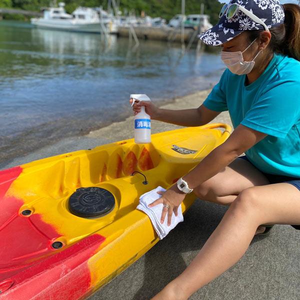お客様に使用して頂く器材はすべてツアー前後に除菌消毒
